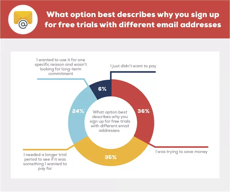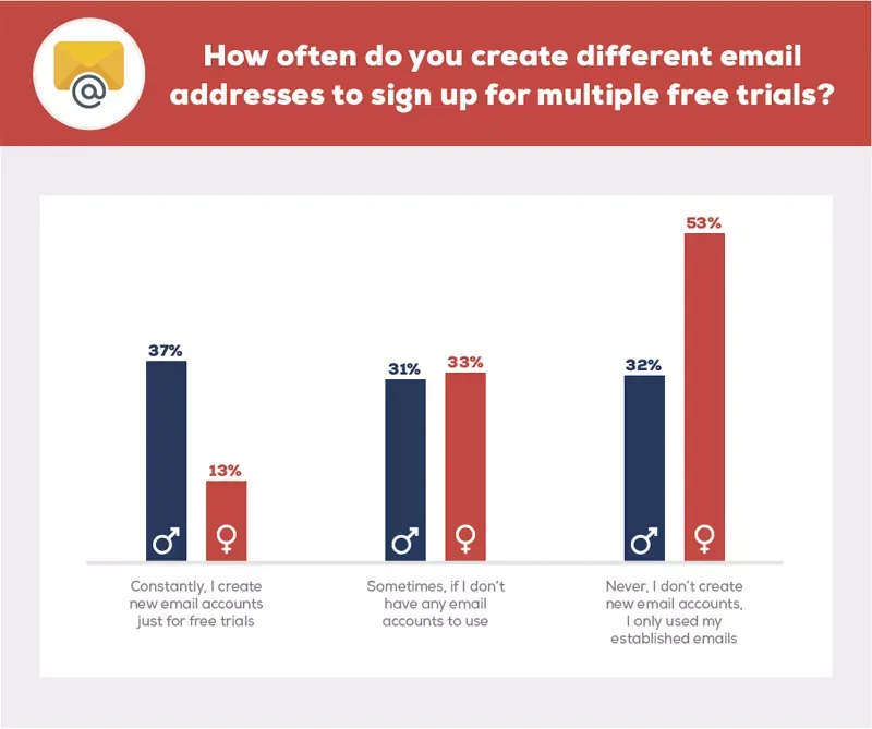- 26% of respondents said they constantly create new email accounts just for free trials.