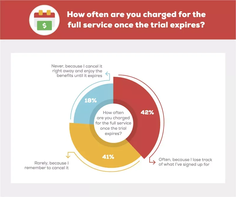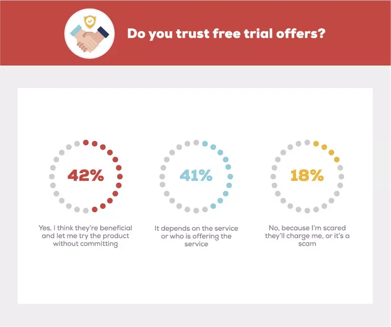 - 18% of respondents said they do not trust free trial offers because they’re scared they will get charged or that it’s a scam.