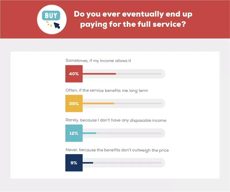- 40% of respondents said they sometimes end up paying for the full service if their income allows them to.