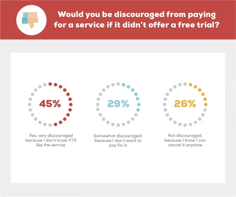 - 45% of respondents said they would be very discouraged from paying for a service if there was no free trial